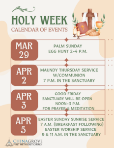 The church office is open Monday-Thursday from 9 a.m. until 4 p.m., and by appointment if necessary. Please stop by and say hello some time and we will be happy to answer any questions you might have about any of the events happening each week at First Church.
